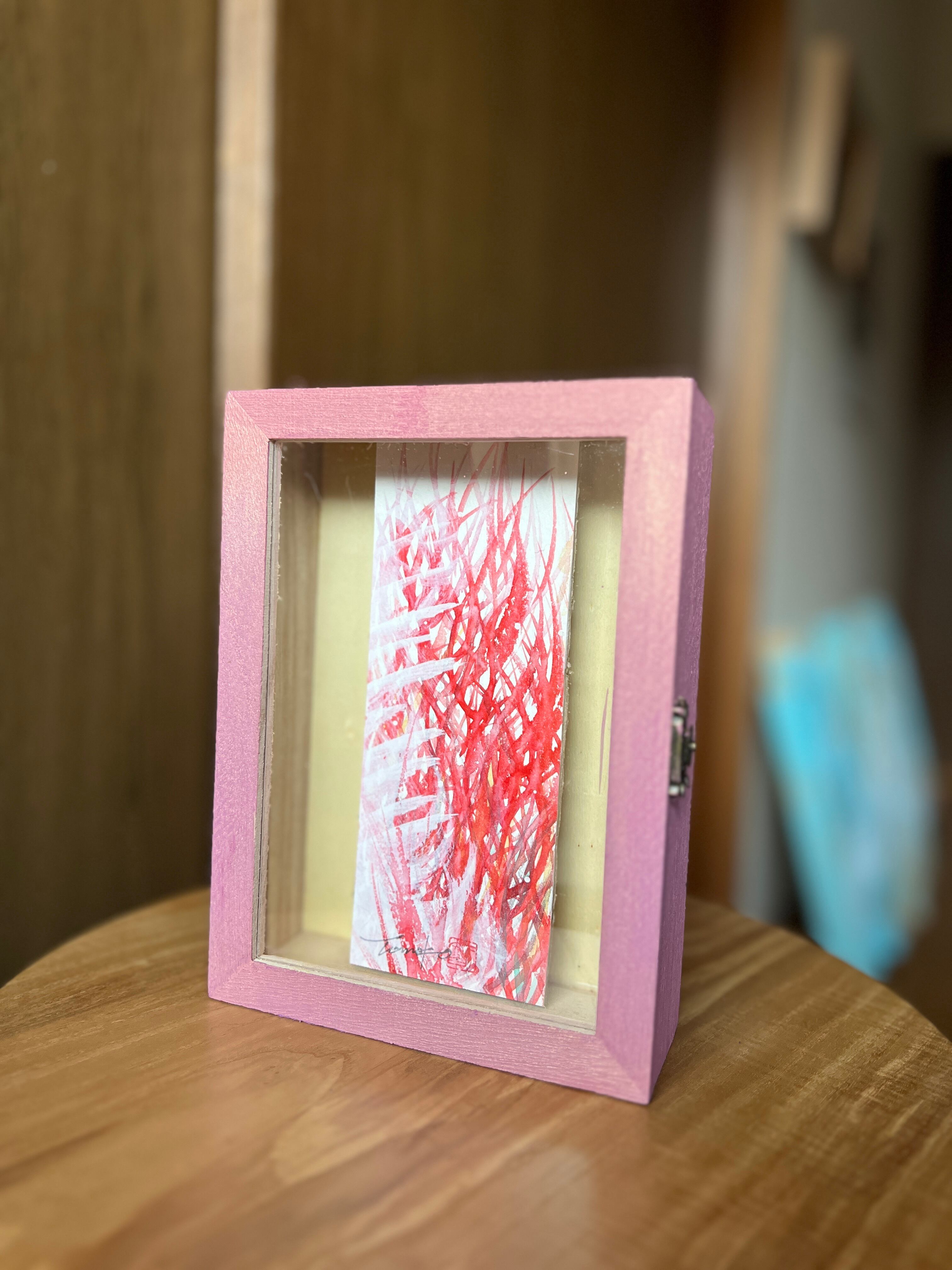 奈良に春を呼ぶ行事、お水取り。専門的には修二会(しゅにえ)というそうですが。練行衆が行に入る前に場所に結界を張るために、お松明でその場を清めるそうです。鬼祓いとも言われています。その炎をイメージしてみました。机の上に置いても、玄関に飾っても様になる、インテリアのような絵画。