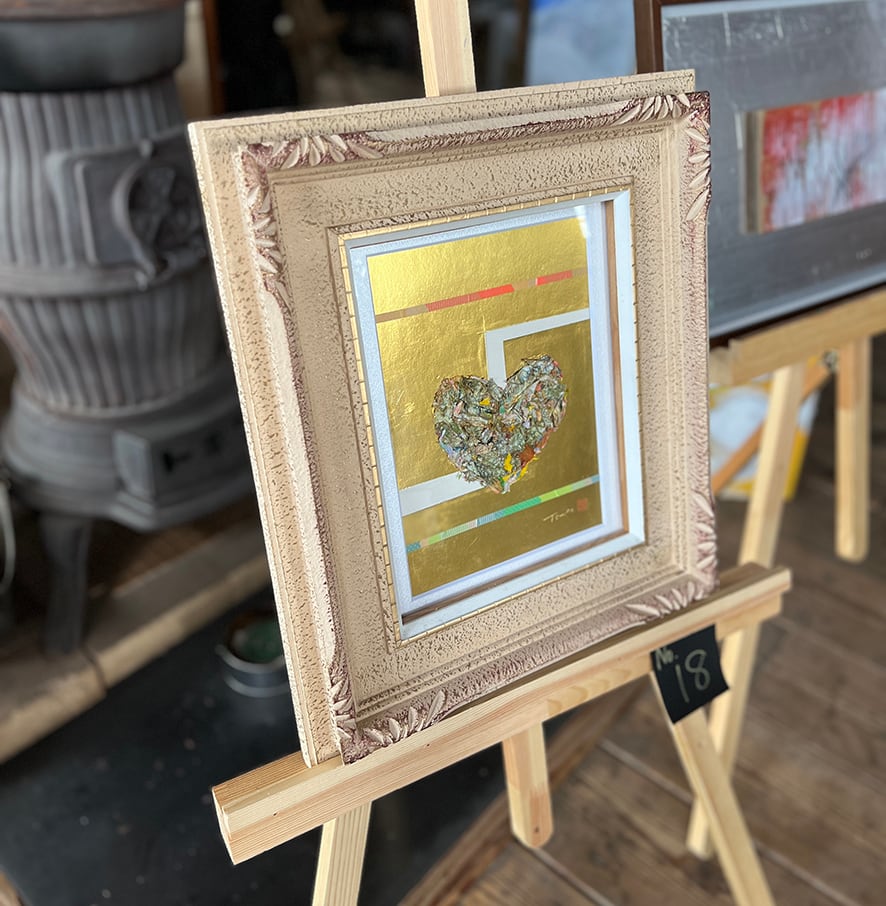 使用素材:ティッシュ、油絵具、金色の厚紙、マスキングテープほか