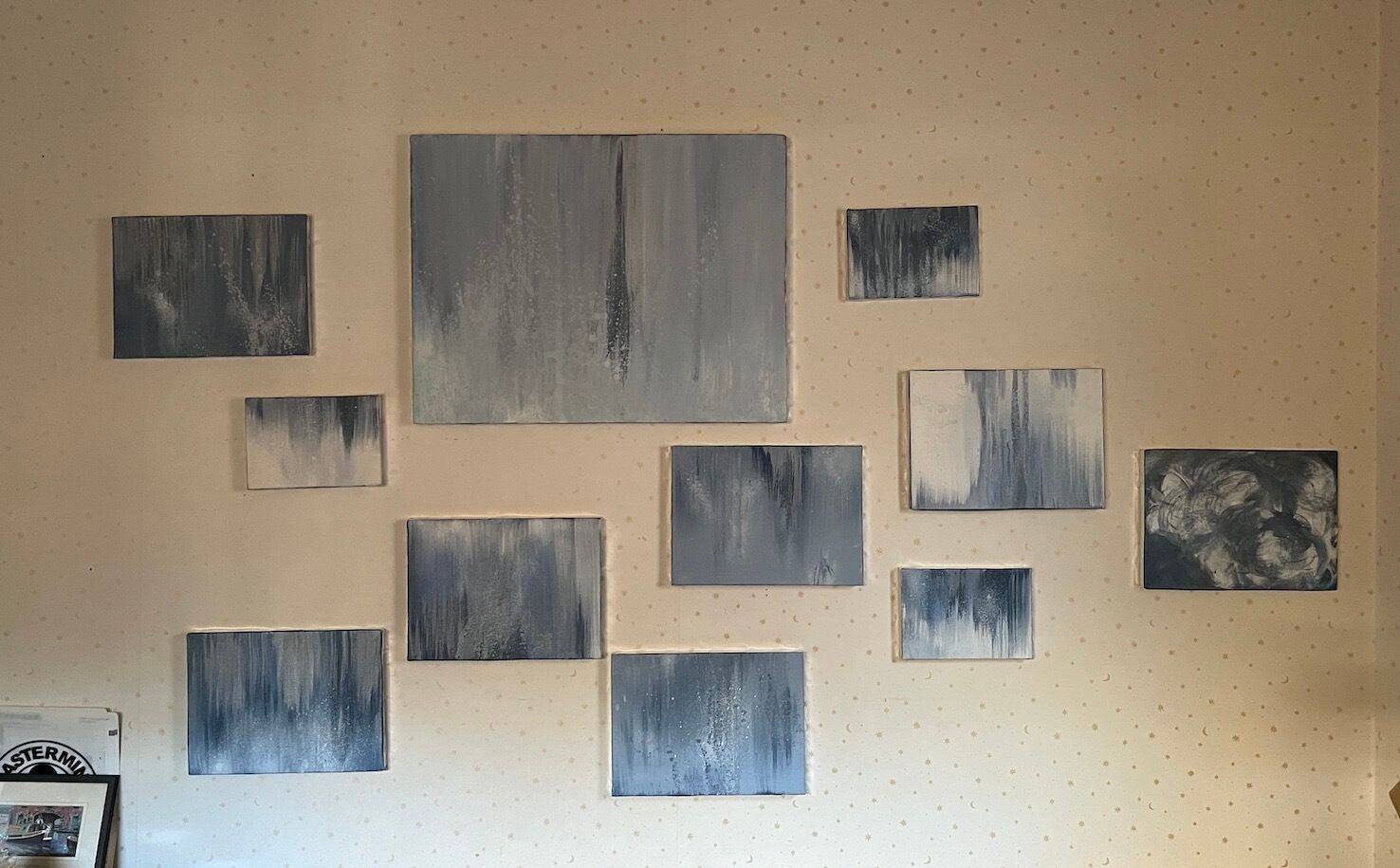 瀧_Waterfallシリーズ F0-3点、各10,000円 F4-6点、各30,000円 F15号-1点、各80,000円 材料:キャンバスに油絵の具