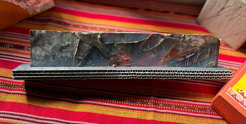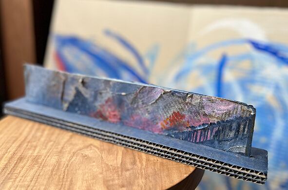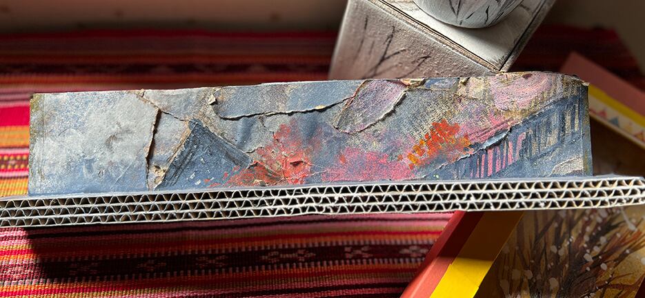 奈良に春を呼ぶ、お水取り「修二会」あなたのお部屋にも春を呼ぼう! 材料:段ボール、コラージュ、油絵の具