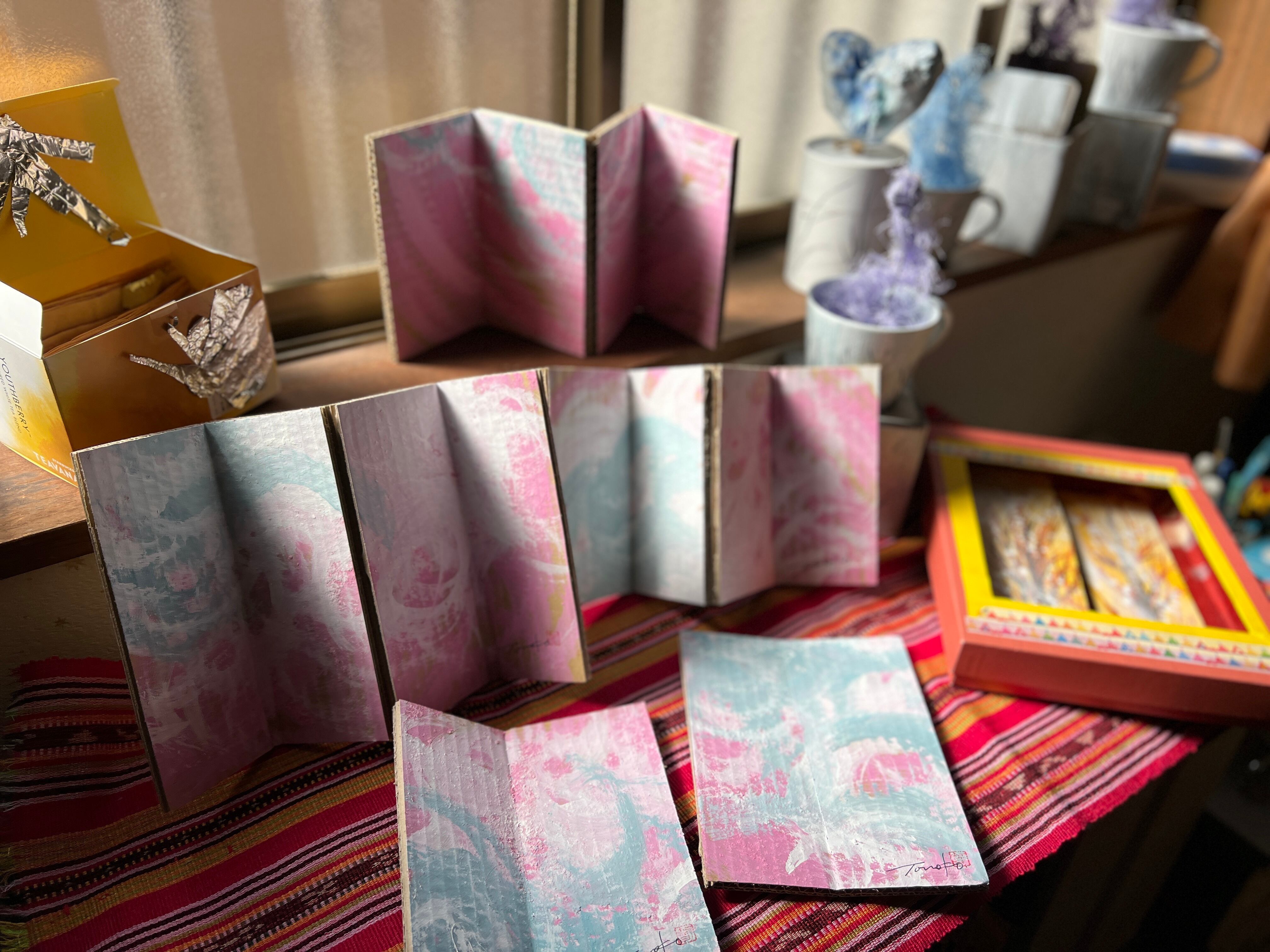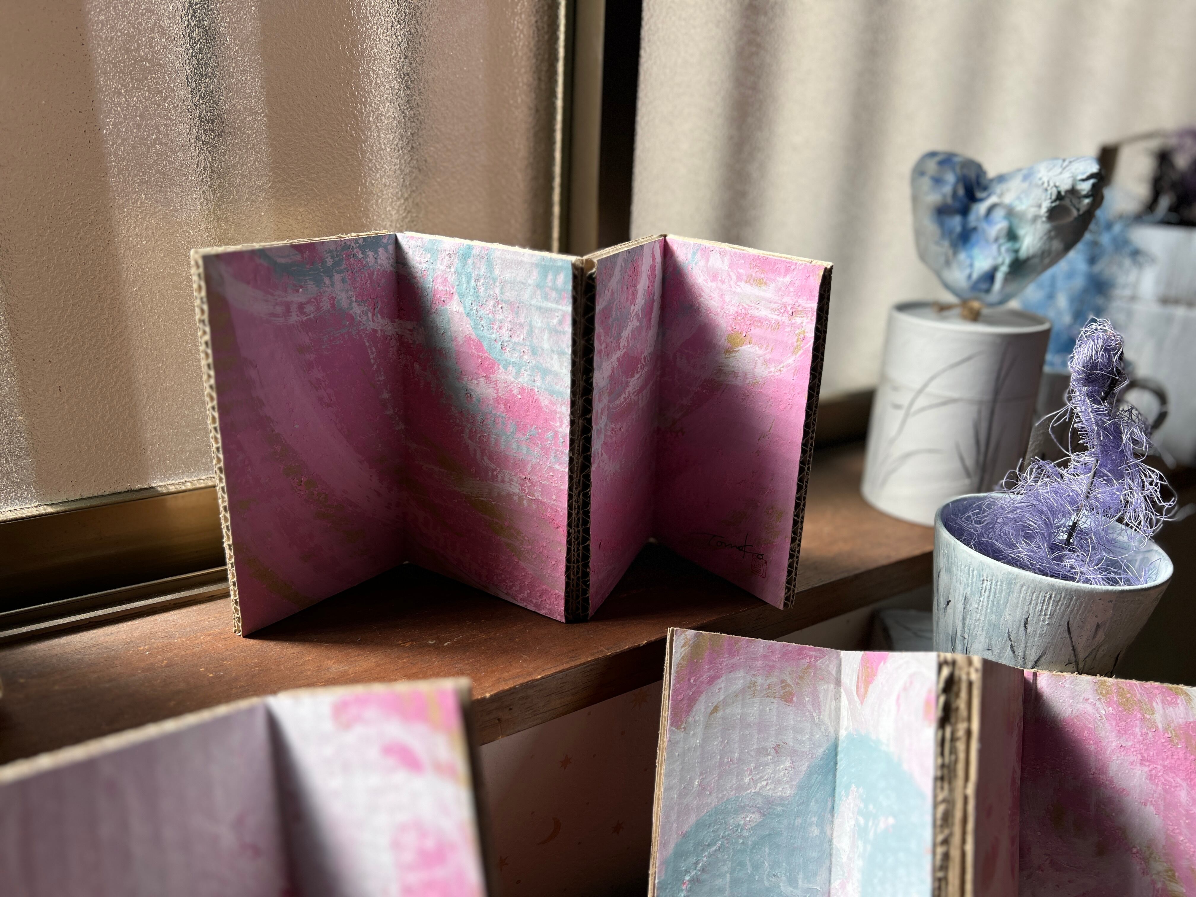 卓上使いにも便利な、屏風です。朝焼けの清々しさを卓上に。