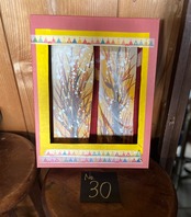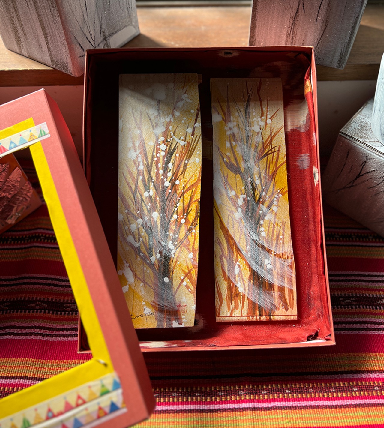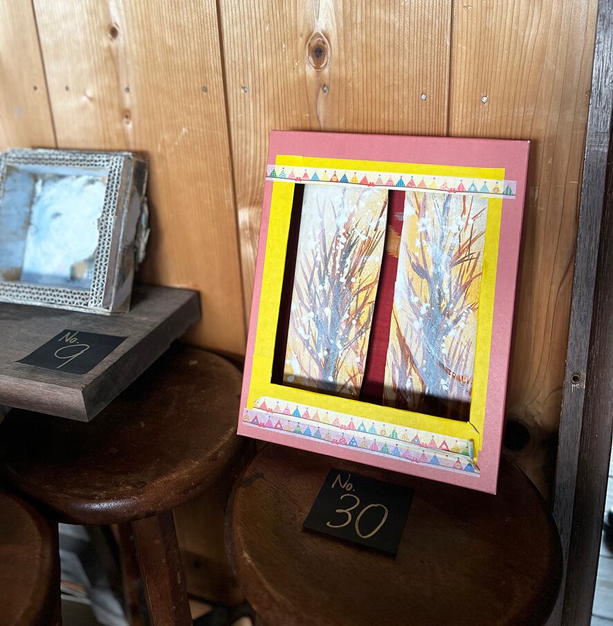 紙箱、桐の板、油絵具